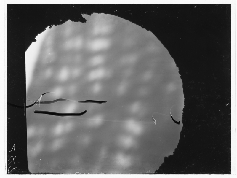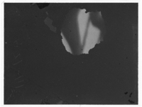 絹糸_UM-17-126 PL No.:UM-17-126 Specimen:絹糸 Date:17.7.6 PM 4.00 Cathode:2.5 A Elect.Curr.:0.05 μA Anode:50 kV Grid:2.5 V Cond.:0 A Object.:0.26 A Proj.:0.78 A 撮影時間:15 秒 天候:晴 使用乾板名:プロセス 現像方法:皿 現像:MQ 定着:指定 薄膜:オ 実験者:カニ 試料製作者:オ 現像者:二 -