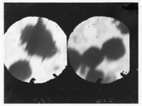 絹糸破砕片_UM16-231・232 PL No.:UM16-231・232 Specimen:絹糸破砕片 E.M.No.:1 Date:16.10.3 PM 1.00 Cathode:A.C 2.8 A Anode:50 kV Grid:6 V Cond.:1.0 A Object.:0.35 A Proj.:0.75 A Note:filament d=0 撮影時間:20 秒 天候:晴 使用乾板名:プロセス 現像方法:皿 現像時間:4 分 現像:MQ 定着:指定 薄膜:ヲ 実験者:ヨ. 試料製作者:ヲ 現像者:カ -